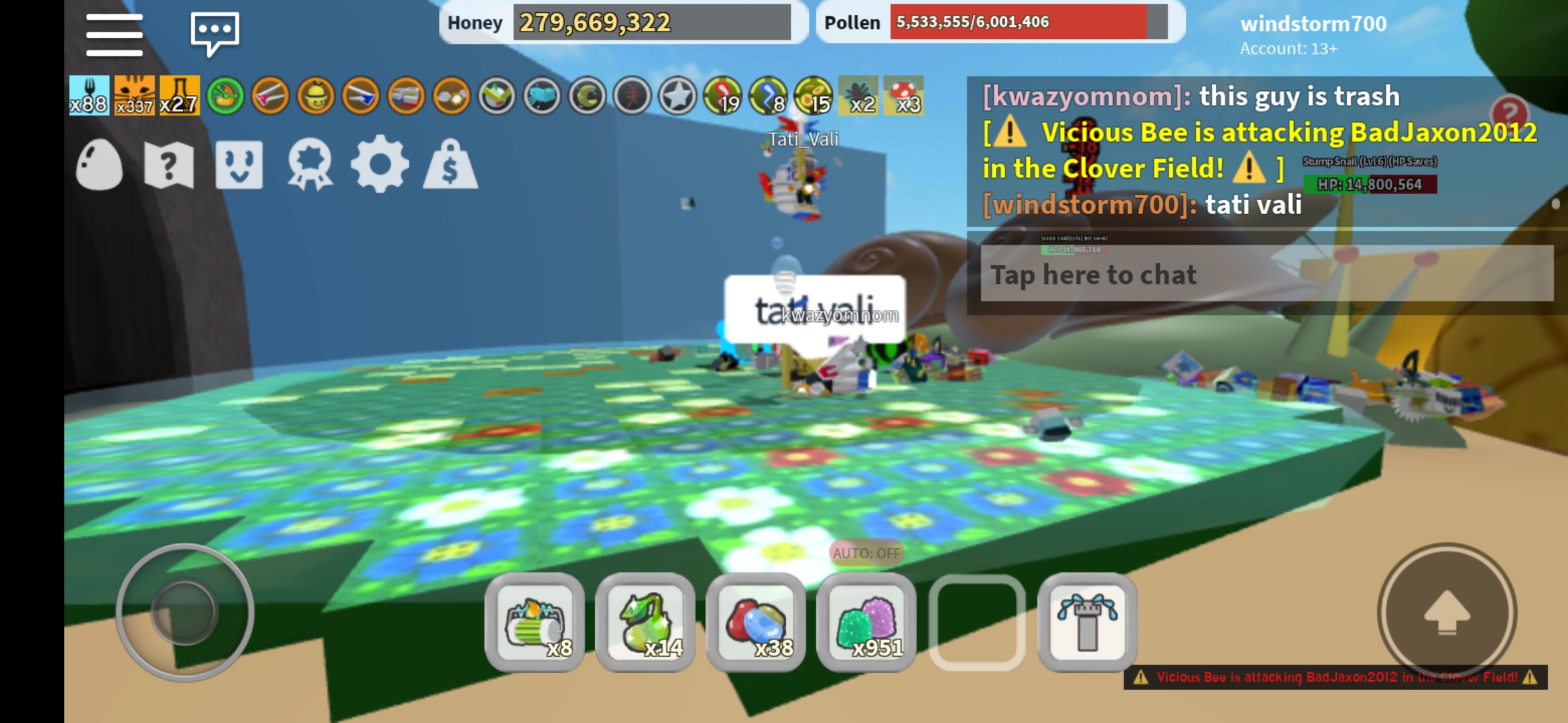 Finishing Getting 20k Pollen In Clover Field In Bee Swarm