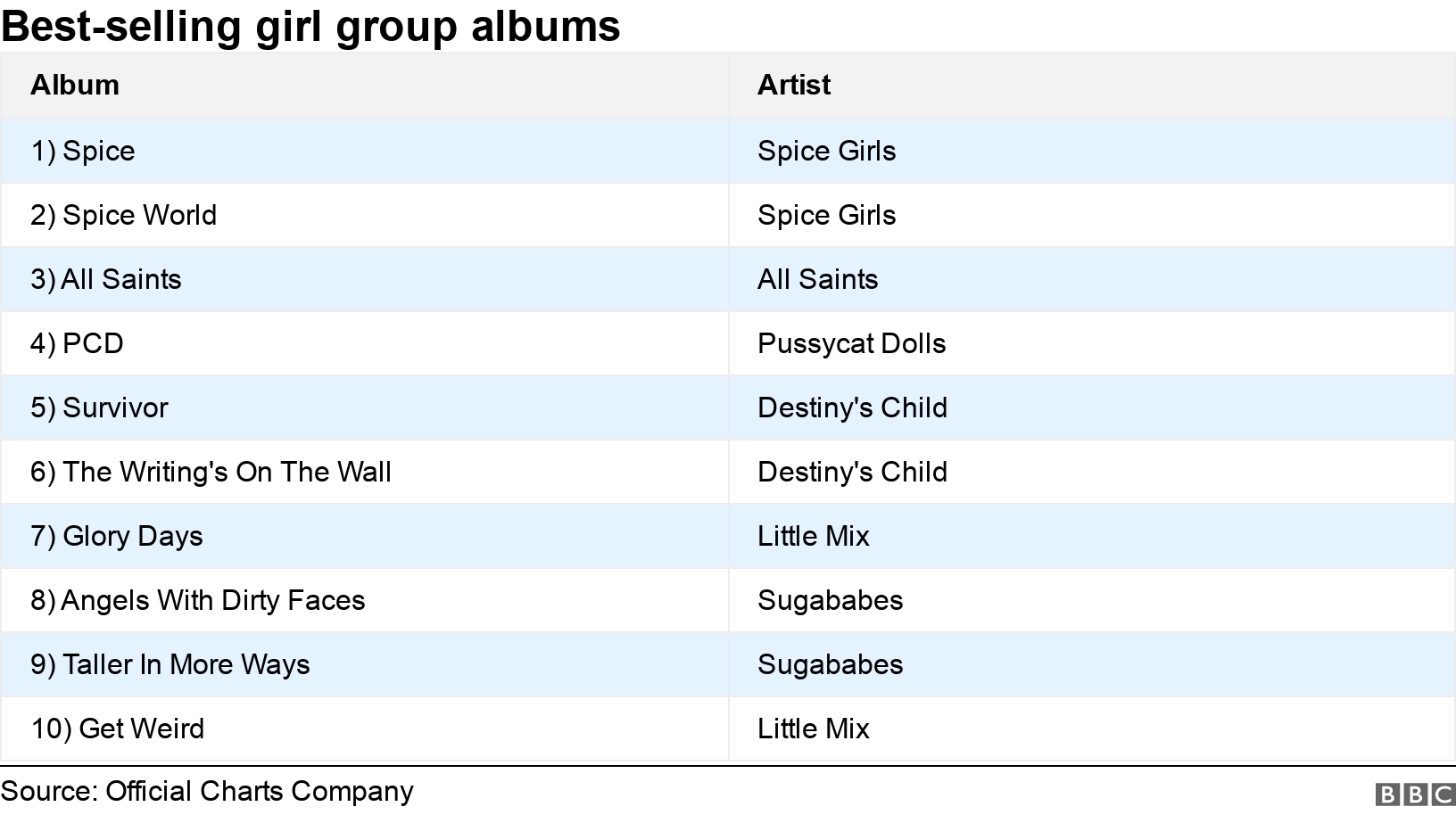 The Uk S Biggest Girl Band Hits Revealed Bbc News