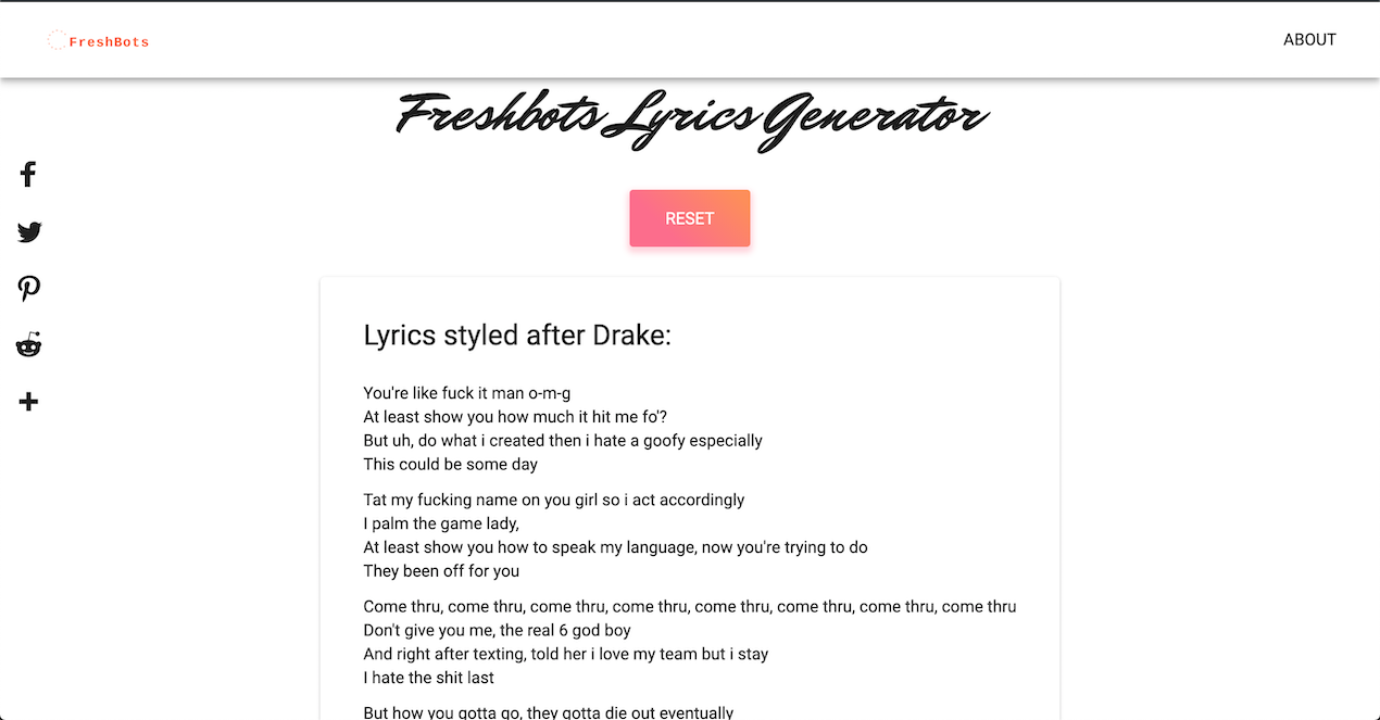 Freshbots Lyrics Generator For Over 40 Artist Styles Product Hunt